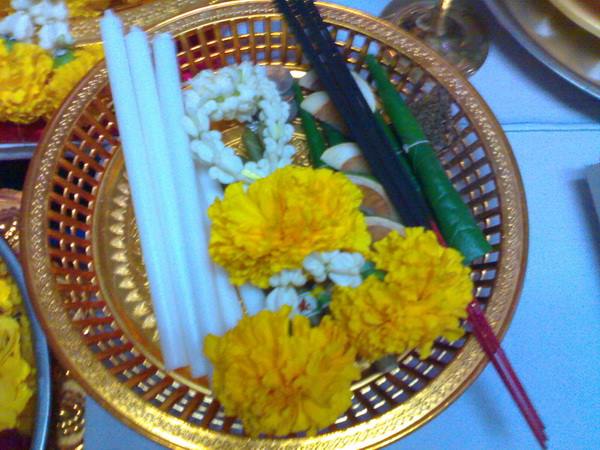 ตอนแรก เอามาขึ้นพานธูป5ดอก เที่ยนขาว5คู่ เงิน24 บาท พวงมาลัย1พวง
