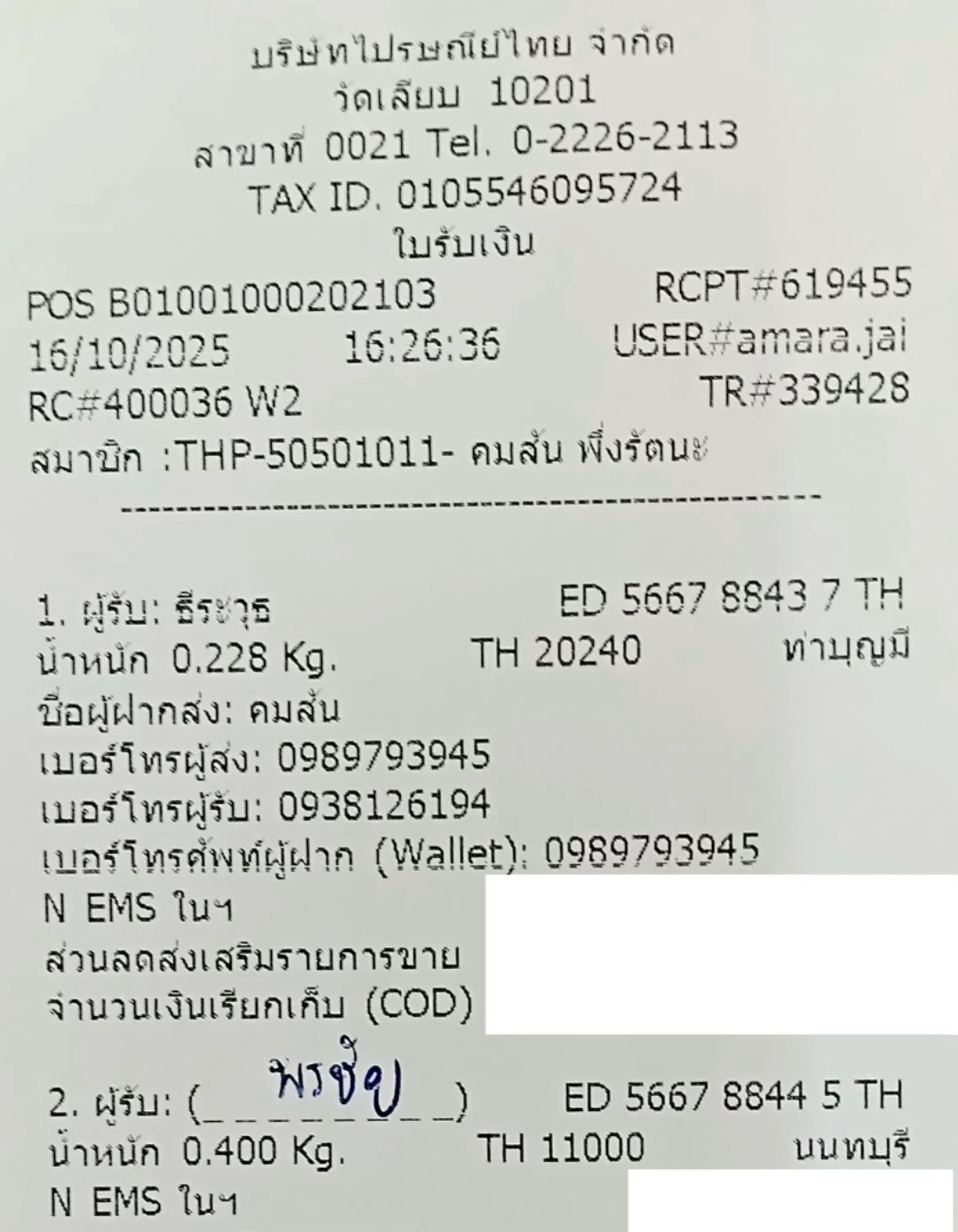 ใบส่งของวันที16/10/2025คลิกดูล…